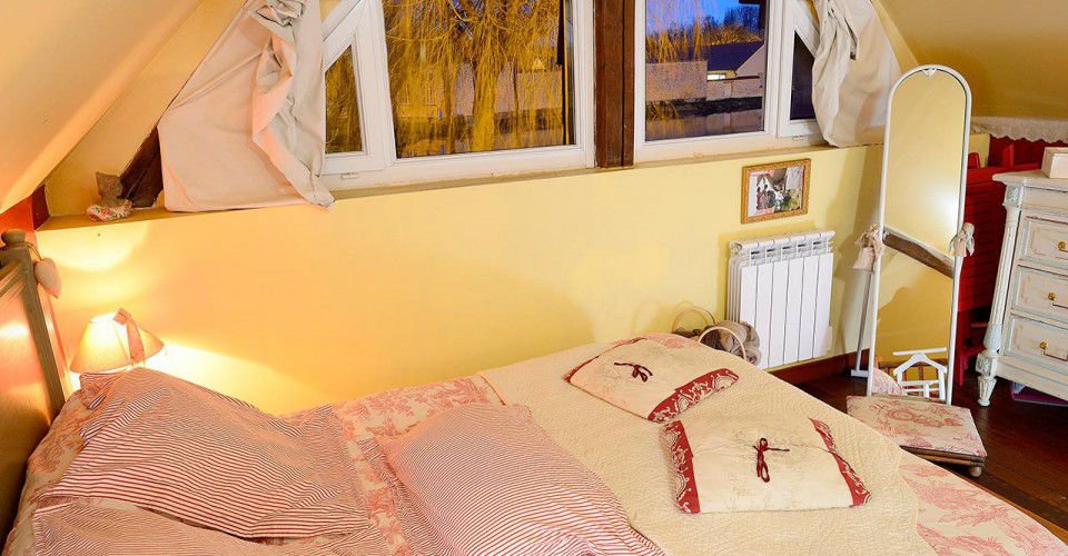 Très grande chambre romantique, mansardée à l’étage.