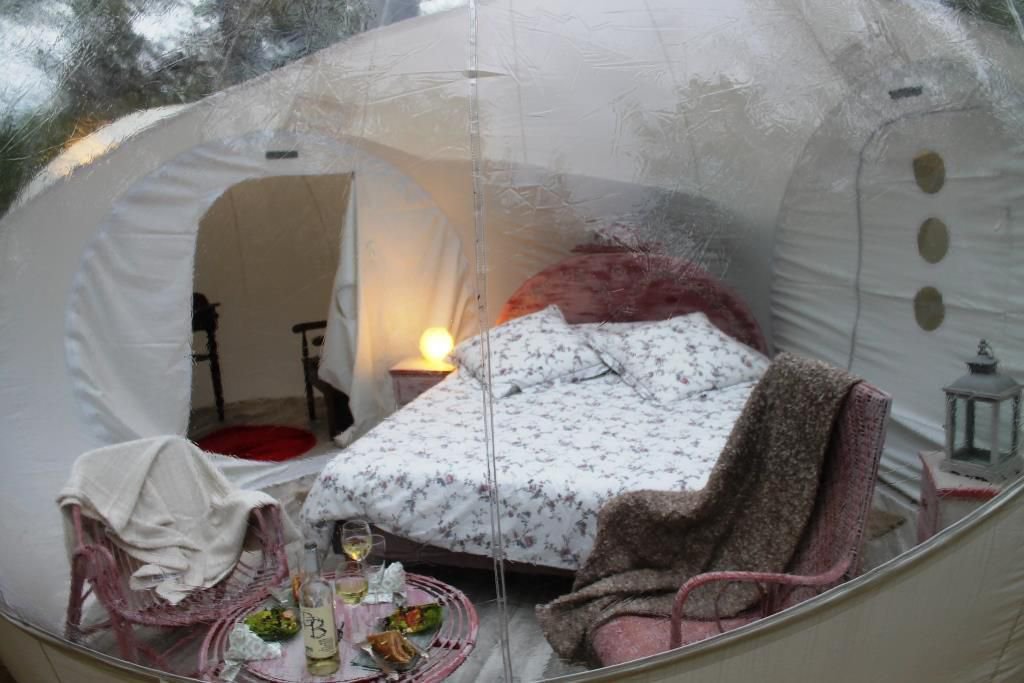 C'est le séjour idéal pour fêter un événement de couple, vivre l'expérience d'une soirée et d'une nuit inoubliable. Si l'on veut fêter un anniversaire, on ajoute quelques bulles d'une bouteille de Champagne et un gâteau ou des mignardises, la tranquillité et l'intimité des bulles. Et le lendemain, le petit déjeuner entre soi en pleine nature, sans vis à vis.