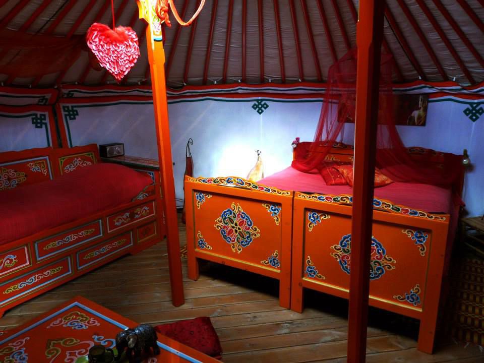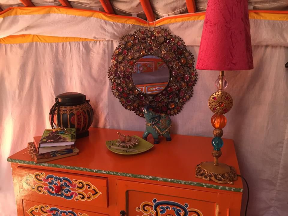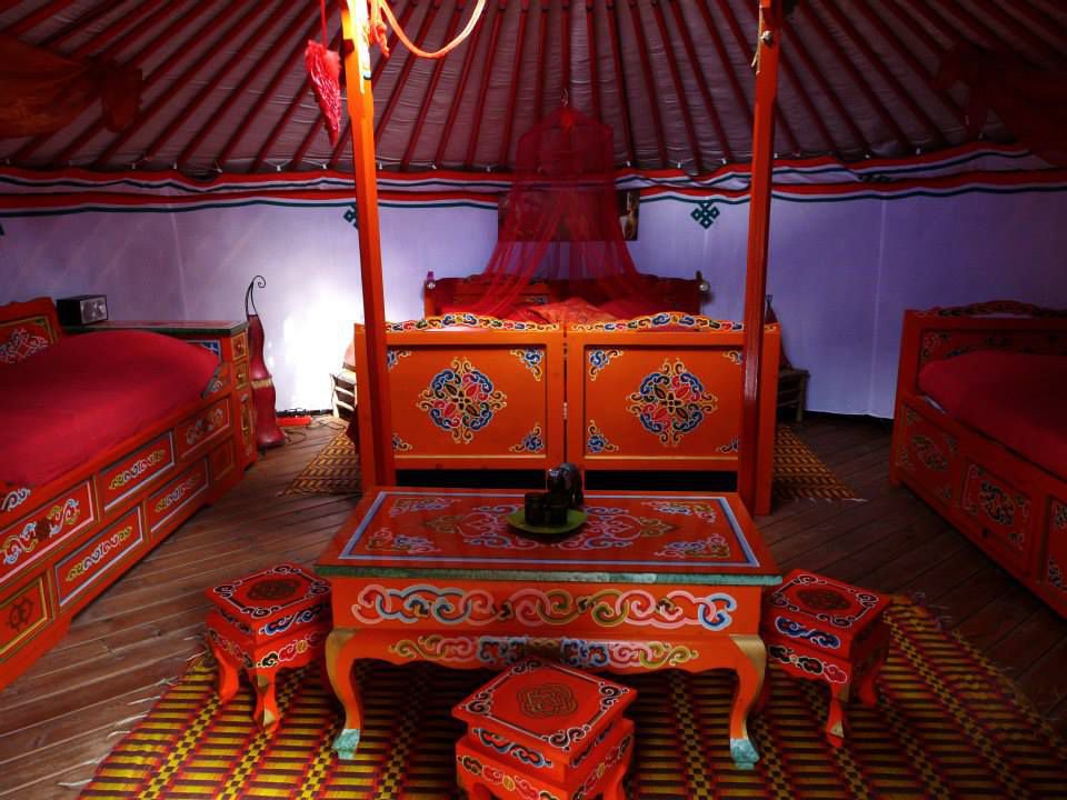 Au Soleil Mongol, je vous invite à séjourner dans une chambre insolite joliment décorée avec de véritables meubles mongols.