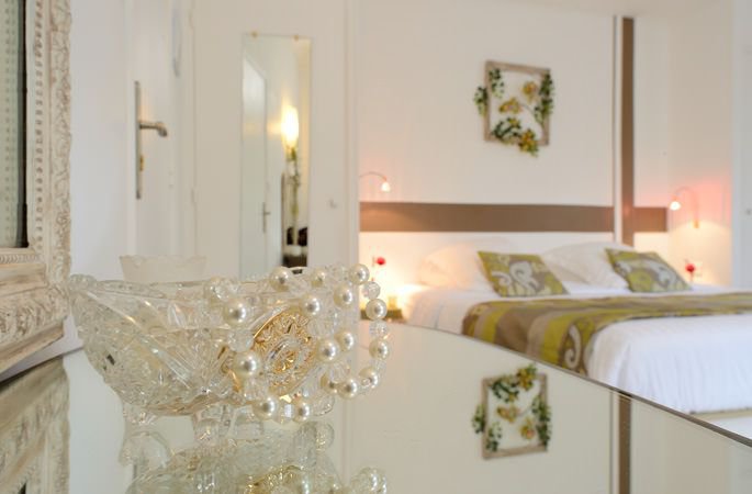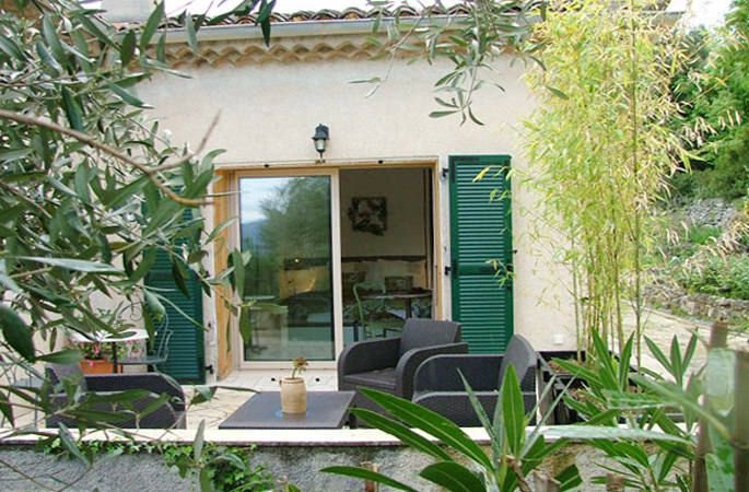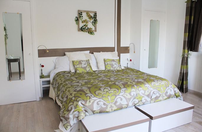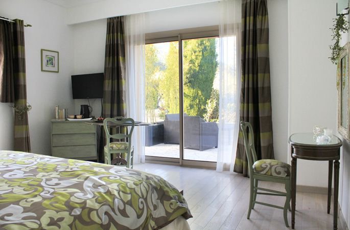 Située côté jardin, cette grande chambre se cache derrière une haie de lauriers roses et un bel olivier...