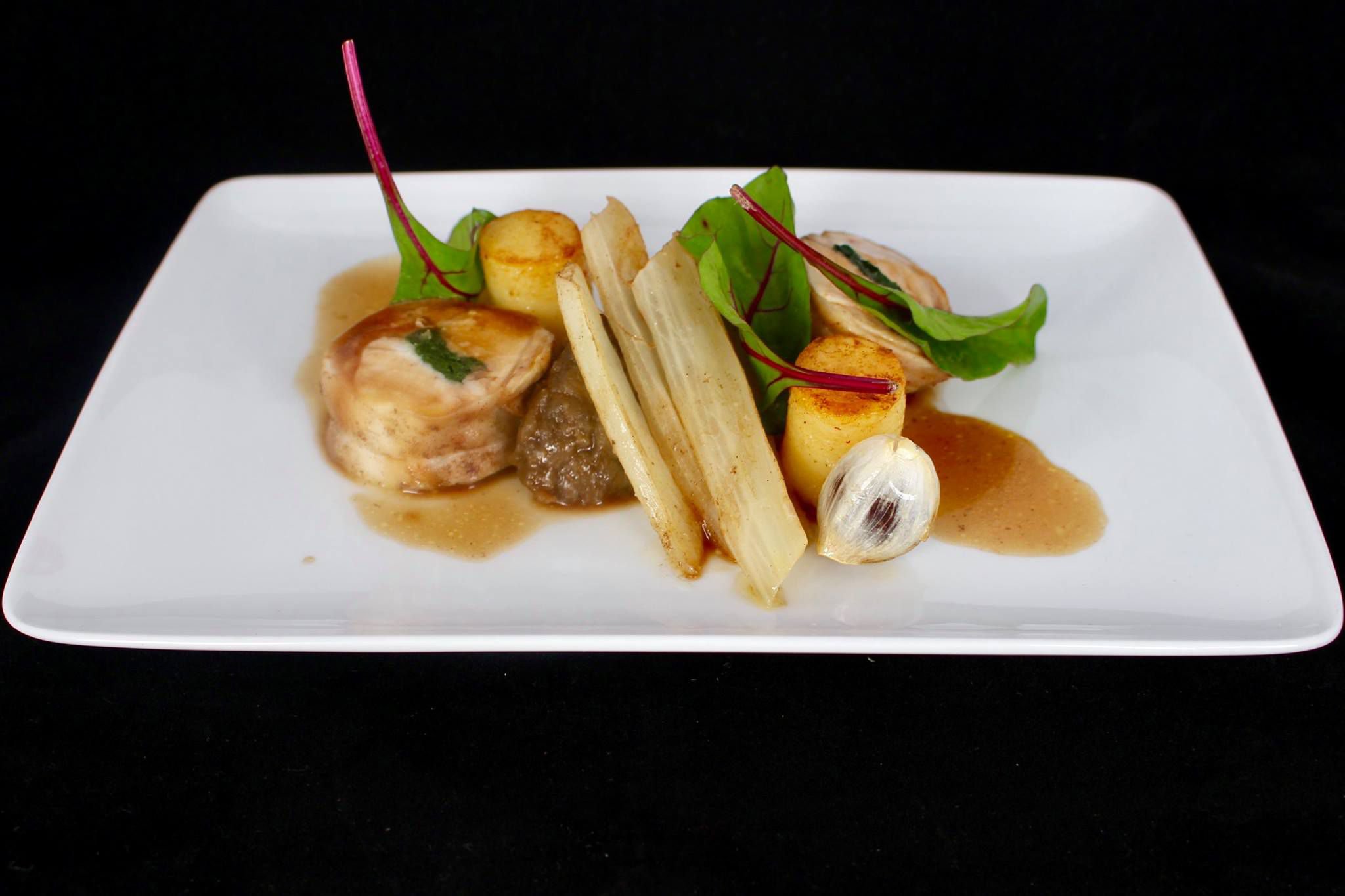 Filet de canette et son pressé de pommes de terre, jus aux épices