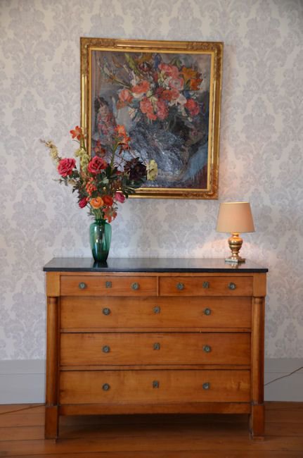 Quatre grandes chambres dont une suite familiale disposées autour d’un agréable salon, occupent l’ensemble du premier étage de cette belle demeure.