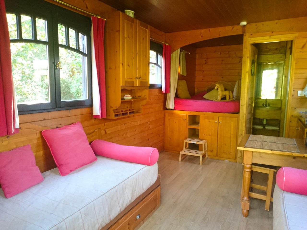Installez-vous confortablement dans votre roulotte, à l'esprit bohème. dans un cadre idyllique et naturel, pour vivre des moments inoubliables en famille, entre amis ou en tête à tête.