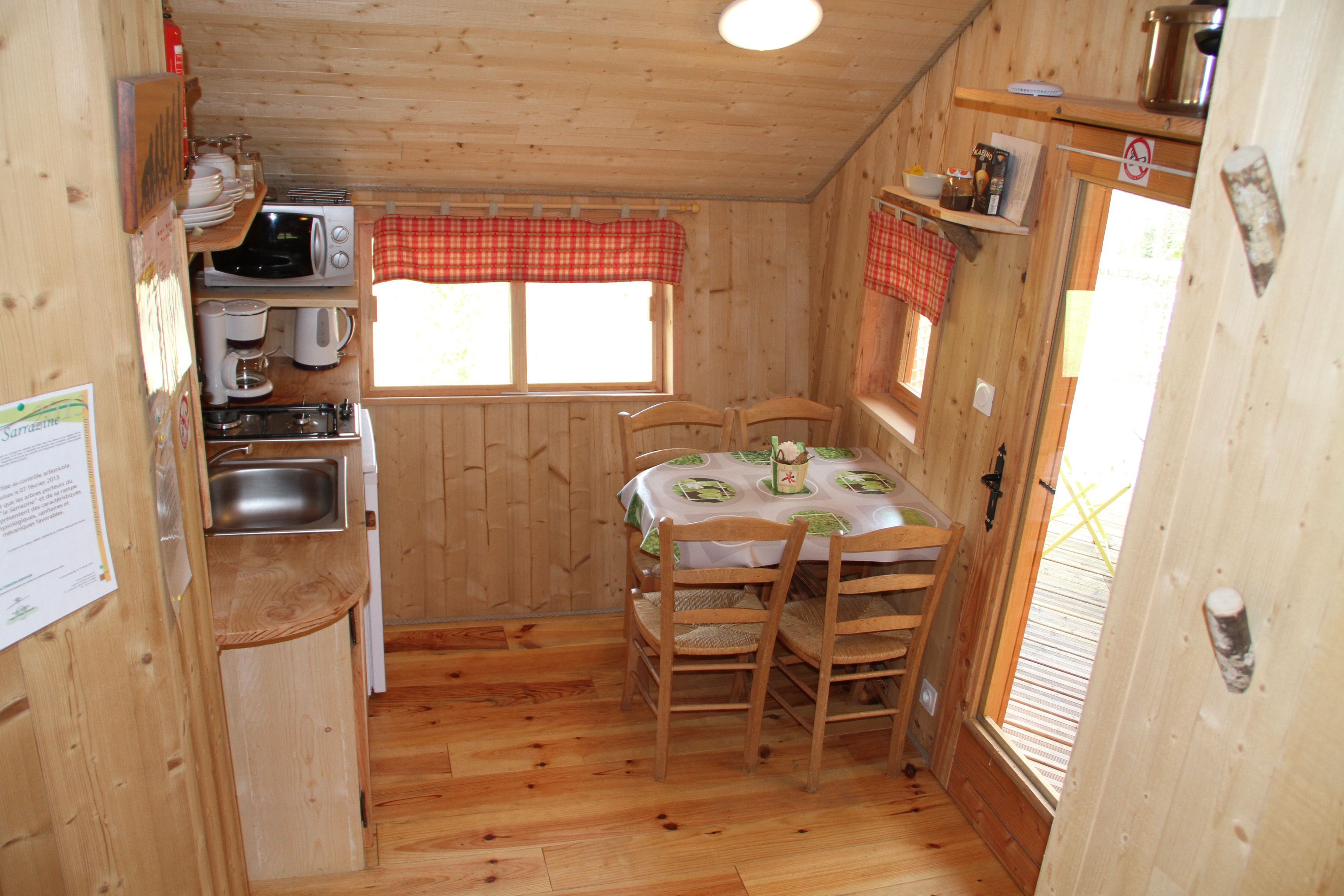 Cabane pour 4 personnes de presque 30 m² dont une grande terrasse de 5m² (draps et serviettes de bain inclus)