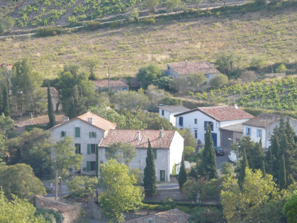 Arrivés à Cascastel : traverser le village ; à la sortie, fourche : prendre à gauche direction Quintillan ; le Domaine Grand Guilhem est la grande bâtisse en pierre avec des volets verts TOUT DE SUITE sur la gauche après cette fourche (ne pas sortir du village).