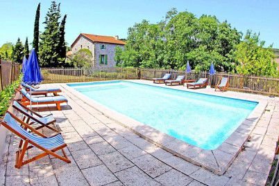 Arrivés à Cascastel : traverser le village ; à la sortie, fourche : prendre à gauche direction Quintillan ; le Domaine Grand Guilhem est la grande bâtisse en pierre avec des volets verts TOUT DE SUITE sur la gauche après cette fourche (ne pas sortir du village).