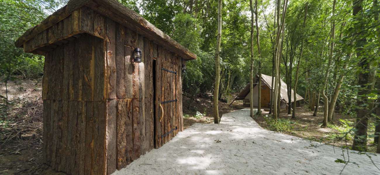Toilette sèche extérieure réservée aux seules tentes de prospecteurs. Eclairage par lampe frontale.