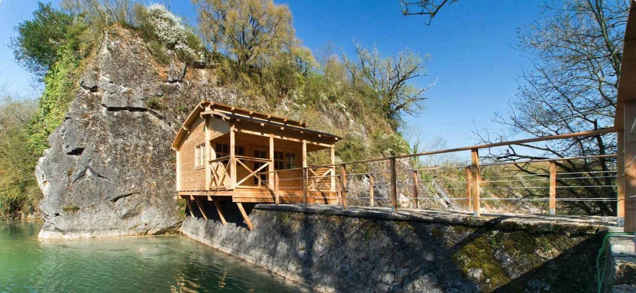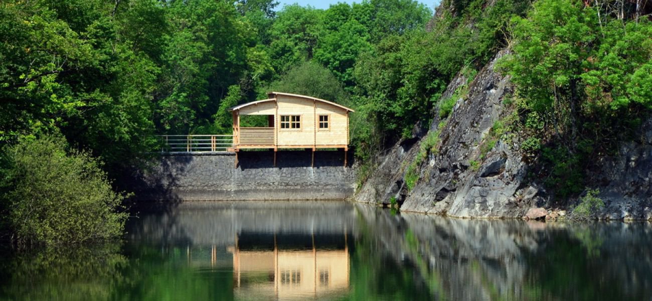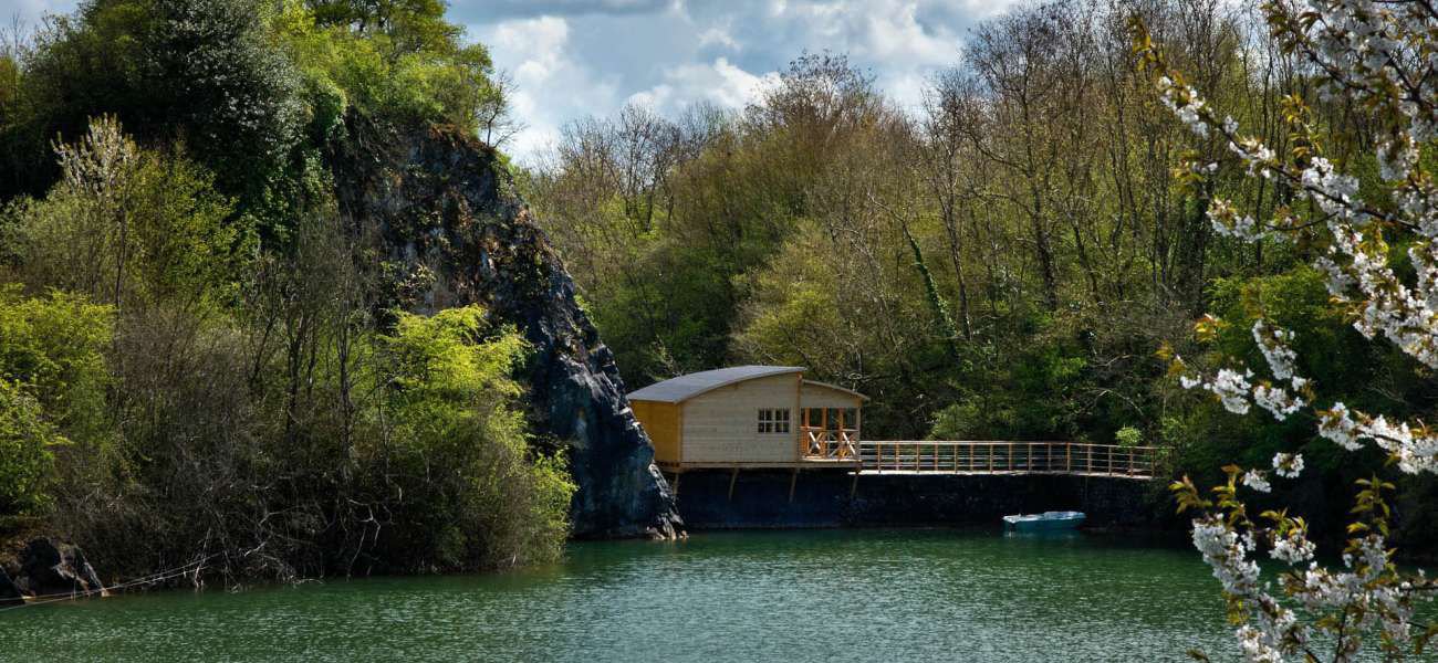 Véritable numéro d’équilibrisme entre terre, eau et air, cette cabane inédite vous offre un panorama à couper le souffle, surplombant deux lacs d’eau claire de carrière !