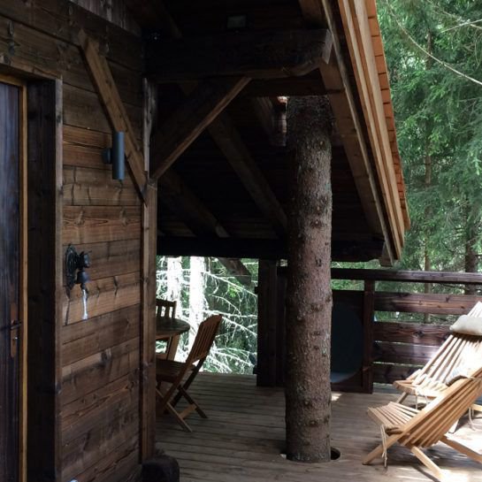 Vous pourrez vous relaxer dans le jacuzzi privatif sur la terrasse de la cabane.
