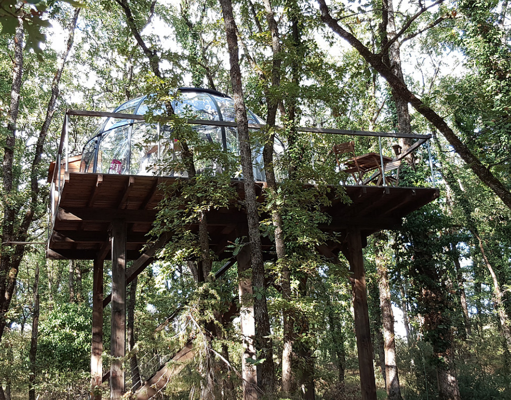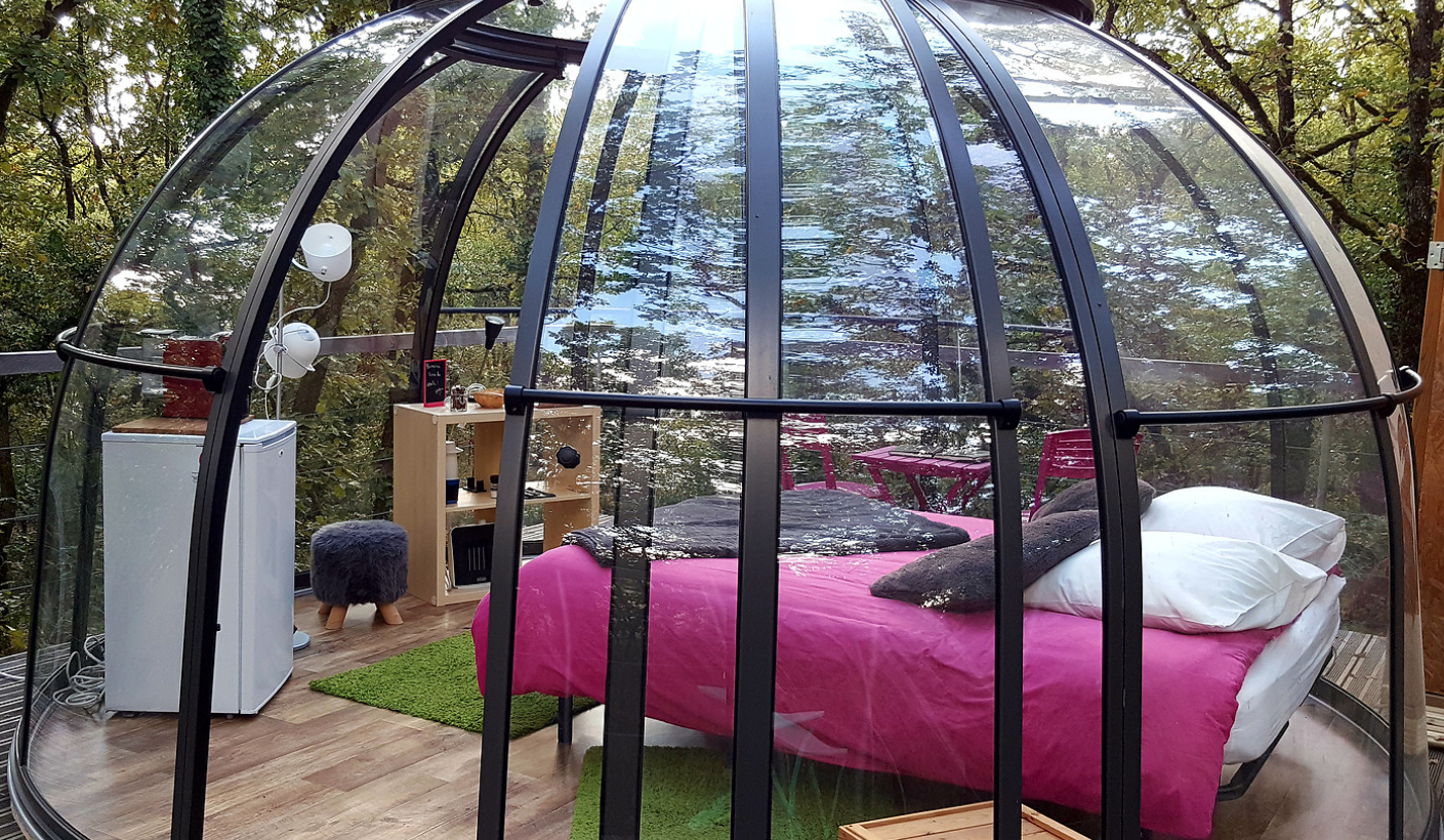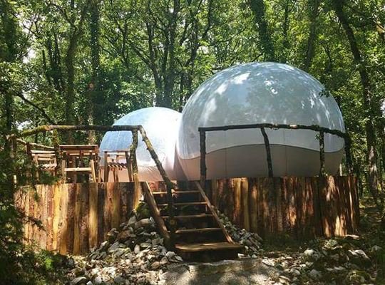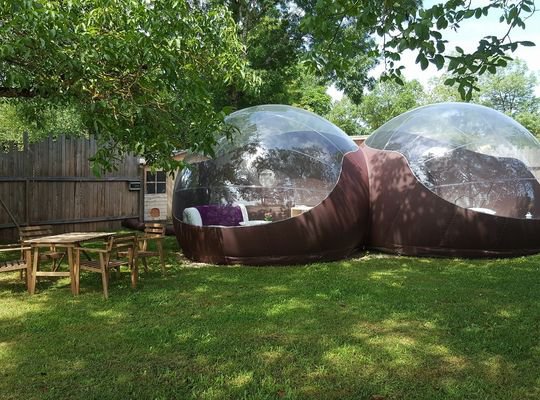Dépaysement garanti avec notre Caban'bulle à 5 mètres de haut ou notre Bull'O Sol posée dans l'herbe.