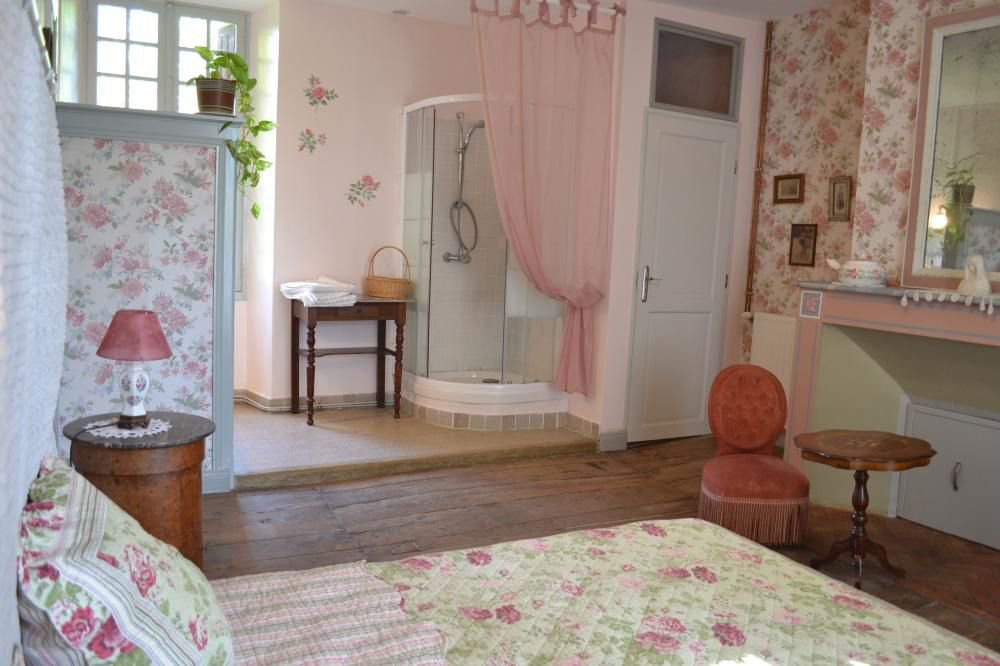 La chambre "rose" possède un cabinet de toilette ainsi qu'une salle de bain privative meublée avec lit à baldaquin et chambres annexes avec lit simple.