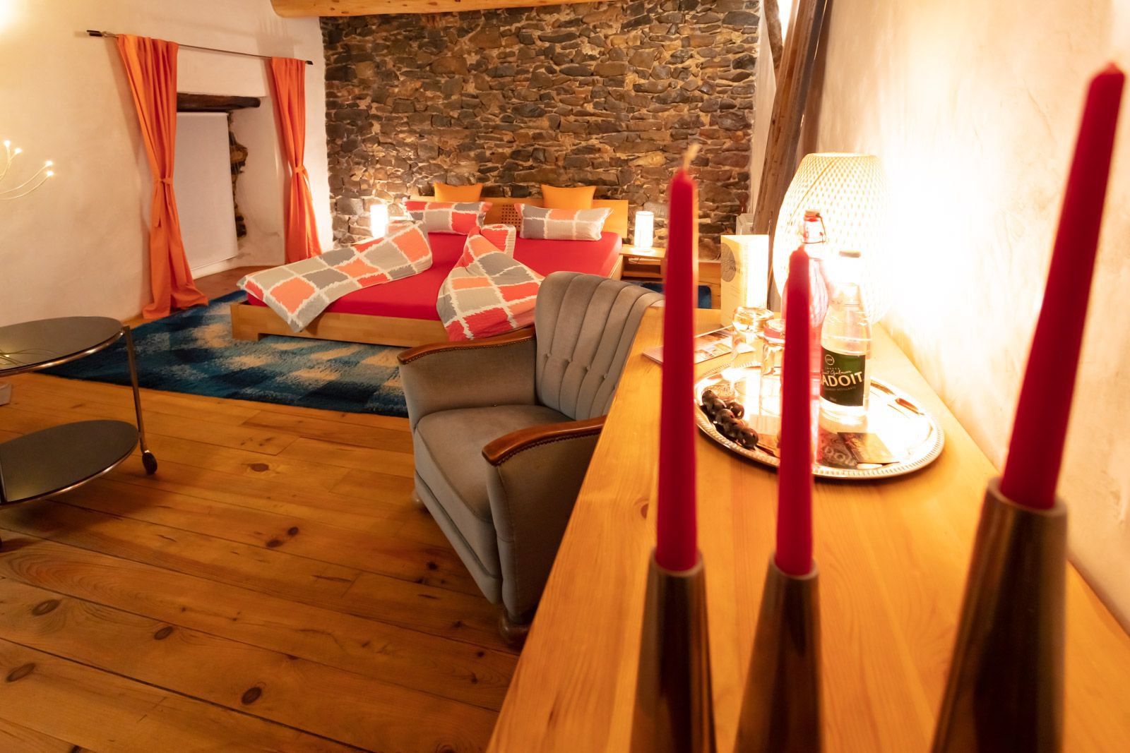 Chambre double avec petit déjeuner, un dîner terroir et un dîner festin (coupe de champagne et boissons incluses).