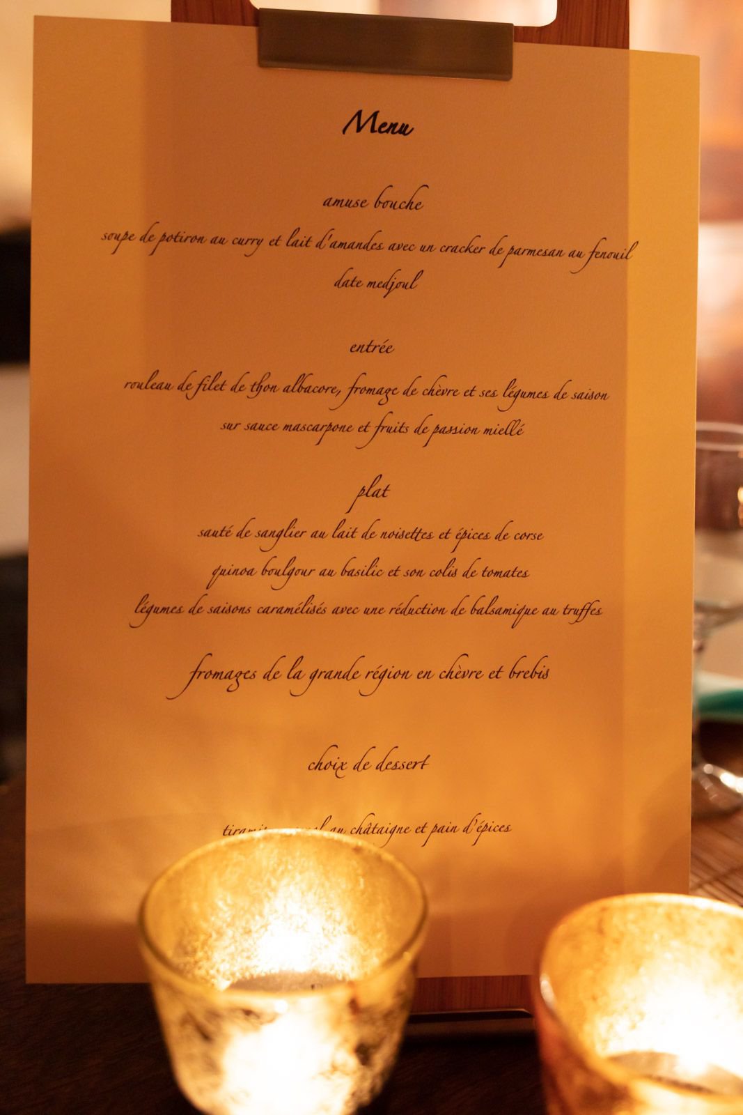 Nous préparons lors de votre séjour des dîners spéciaux de fêtes surprise (amuse bouche, entrée, plat poisson, plat viande, fromages, dessert)