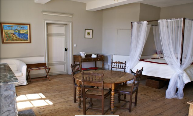 Son lit baldaquin et son beau plancher vous séduiront. D’un côté, une belle chambre romantique donnant sur la piscine et de l’autre côté de la salle de bain, la chambre Louise de 30m2 avec ses 3 lits simples.