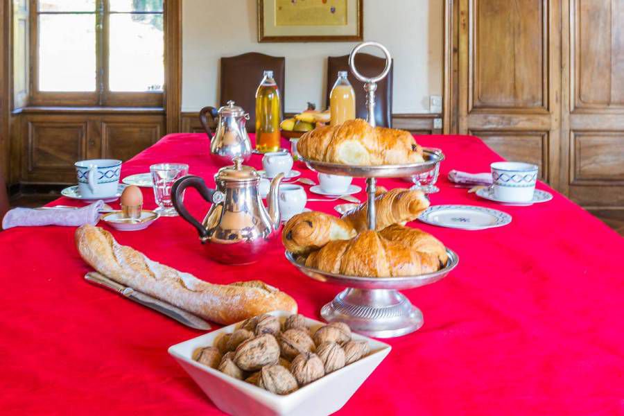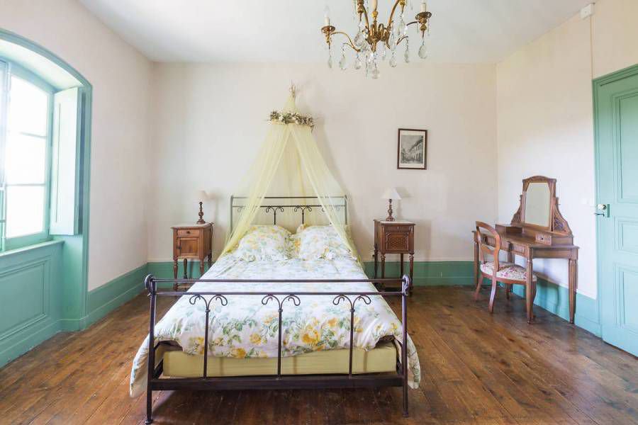 Vous passerez la nuit dans la chambre jaune avec petit-déjeuner pour 2 personnes.