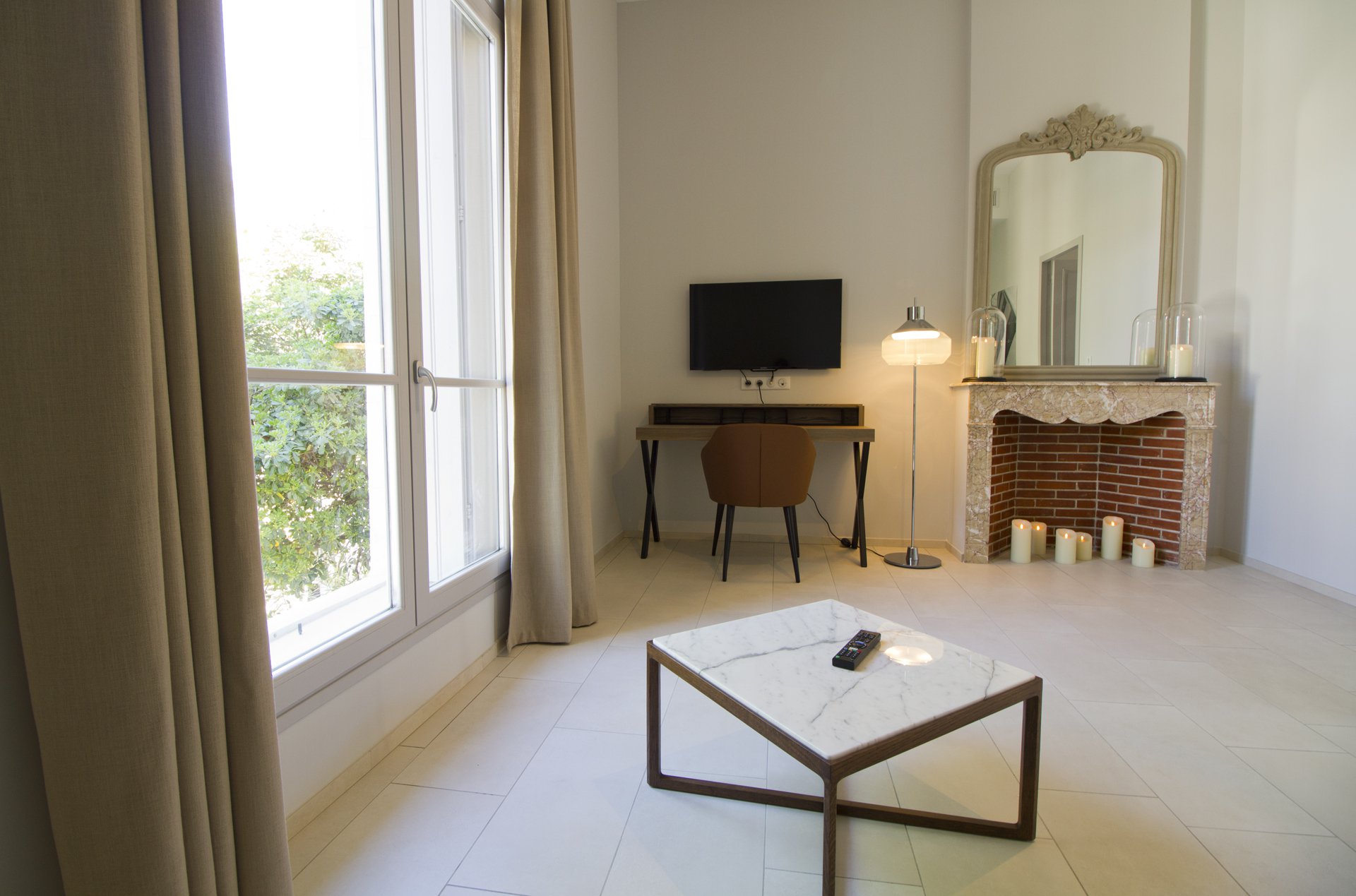 * La 2016 - Située au dernier étage cette suite propose sur 42 m2, un salon séparé, une chambre et une salle de bain, décorés dans un style moderne avec de nombreux rangements. Depuis le salon profitez de la vue magnifique sur la Tour Magne.