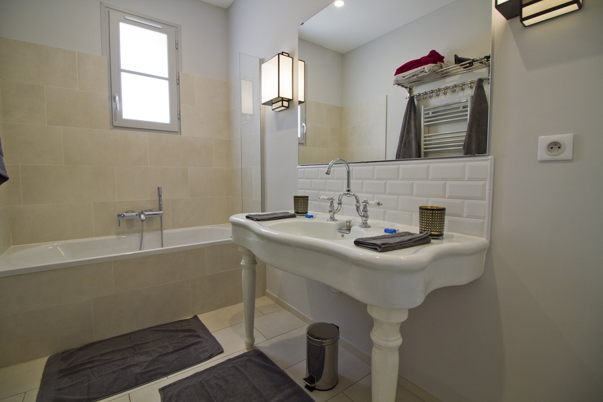 Salle d’eau privative et sanitaires indépendants. Décoration de style classique.